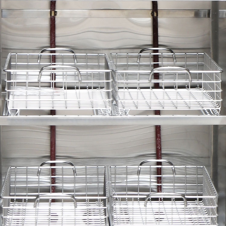 2.利用幹式高溫方法消毒,使經消毒的餐具沒有臭氧、蒸汽、紫外線消毒等方法難免的殘留水漬,集餐具消毒與烘幹及無菌儲存等功能於一身。